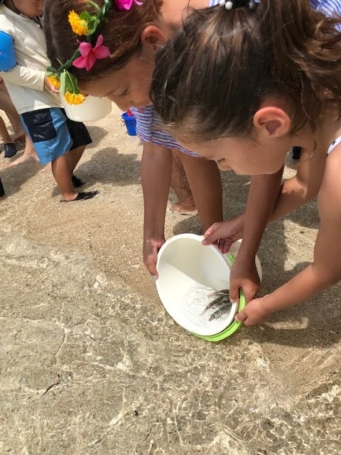 毎年、イベントにはホテルご宿泊のお客様のほかに多くの観光客、地元の子供たちが参加。小さなバケツに入れら