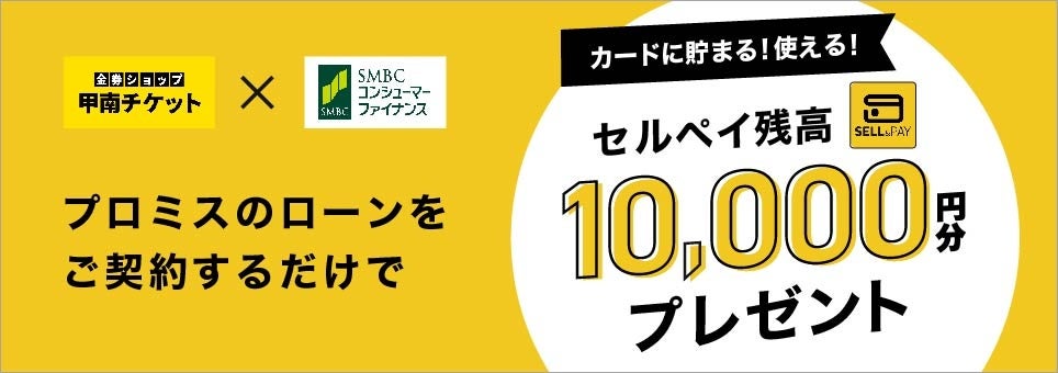 また、甲南チケットのサービスを通じてプロミスをはじめてご契約いただくお客さまには、セルペイ残高10,000円分をプレゼントいたします。