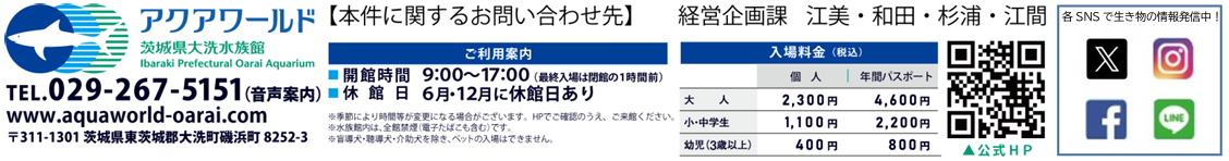 ※午前中からお昼頃にかけて水族館周辺道路の混雑が予想されます。予めご了承ください。