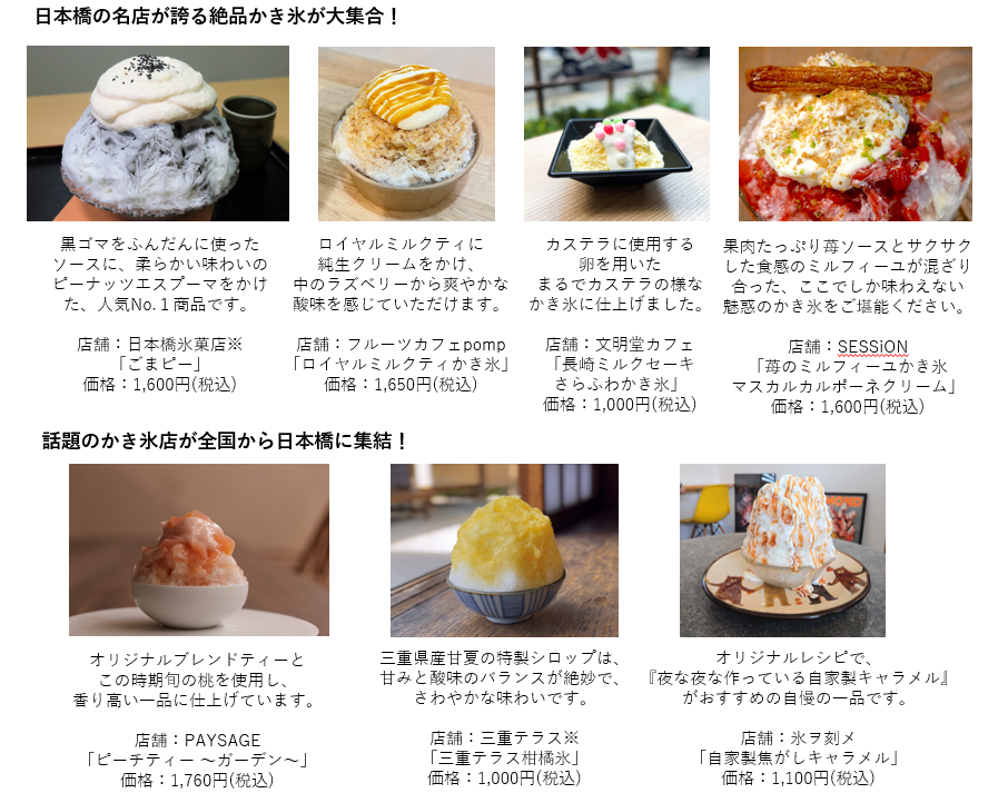 夏らしいグルメやイベントが今年も日本橋に集結。昨年好評「日本橋かき氷フェスティバル」を今年も開催 2024年7月12日(金)~9月1日(日) 日本橋、八重洲、京橋エリアで開催