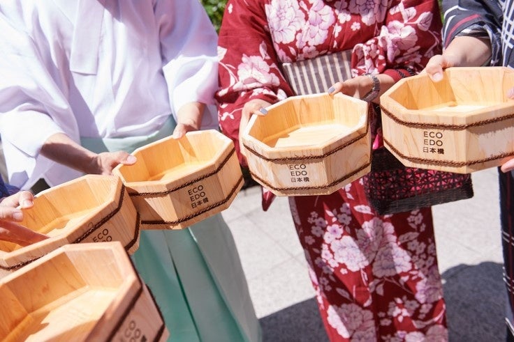 三井不動産が管理する物件で消費期限が迫っている防災備蓄品用の水を活用した打ち水を実施します。ECO EDO 日本橋の「のぼり」を目印に、打ち水を行い「涼」を感じましょう。日本橋にお勤めの方も、遊びに来た方も、どなたでも自由にご参加いただけます。