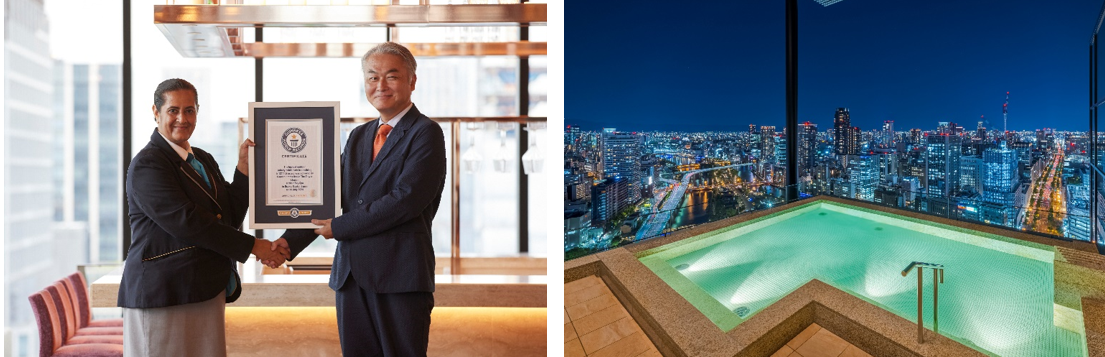 株式会社カンデオ・ホスピタリティ・マネジメント(本社:東京都港区、代表取締役会長兼社長:穂積 輝明)が2024年7月17日(水)に開業する「カンデオホテルズ大阪ザ・タワー」(大阪府北区)は、地上31階に「インフィニティ露天風呂」が誕生。「建造物内の最も高層階にあるインフィニティ露天風呂/ Highest outdoor infinity public bath in a building」として、本日2024年7月11日正式にギネス世界記録に認定され、ギネス世界記録™公式認定員より、公式認定証の授与が行われました。