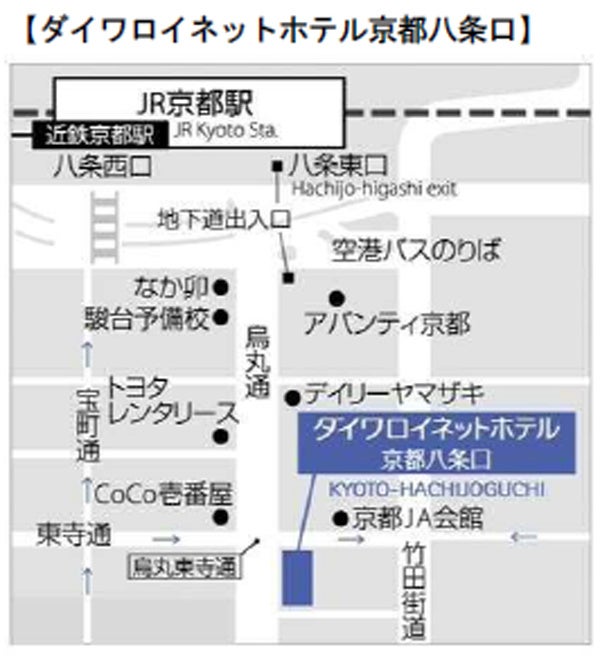 交通:JR「京都駅」より徒歩約4分、地下鉄「京都駅」より徒歩約6分