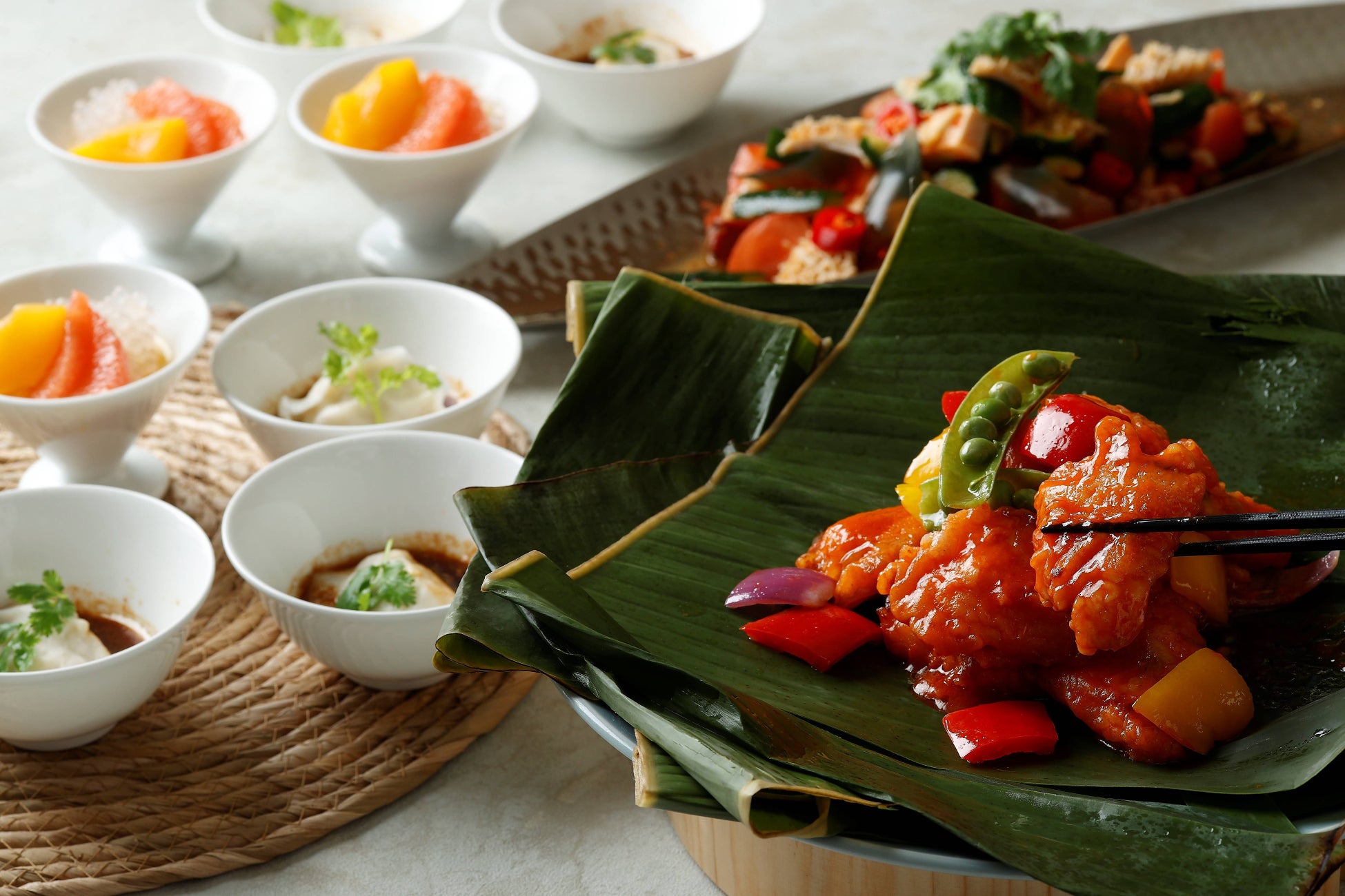 シーダパレスでは、涼しい夏を感じられるアジアン料理が登場しています。サンザシ飴を隠し味に柑橘の風味を付けた「白身魚の餡かけ」や、台湾でポピュラーに使われるサーチャージャンをベースにタレと合わせた「台湾水餃子」、「杏仁豆腐」は食感が楽しいタピオカを乗せマンゴーシロップで仕上げました。