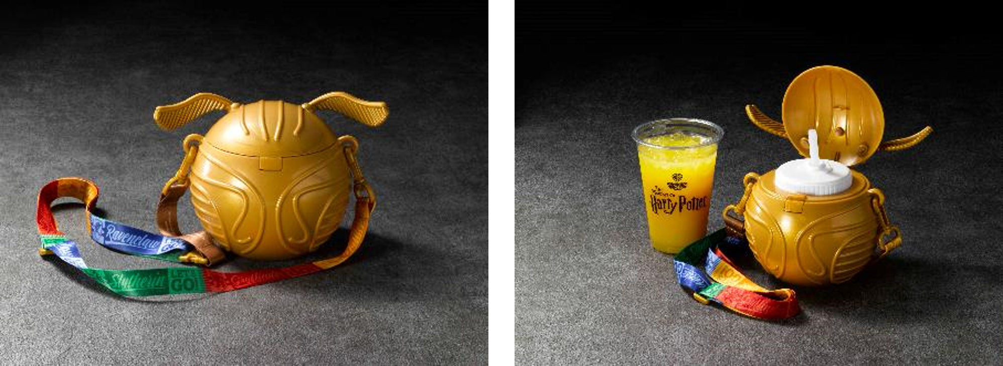 ツアーの中間に位置する「バックロットカフェ」では、3月に登場したアンブリッジ教授にインスパイアされたプレミアムパフェに続いて、同じく多くのファンに愛されるキャラクターのひとり、ルーナ・ラブグッドにインスパイアされたプレミアムパフェが登場。ルーナを象徴するアイテムである「メラメラメガネ」をモチーフにしたクッキーやルーナらしさが詰まった印象的なパフェは、見た目はもちろん、夏らしい爽やかなラムネとレモンの味が楽しめます。 また、スプラウト先生の温室で馴染み深い魔法生物のマンドレイクを乗せた植木鉢風のチョコレートトライフルなど、食べることすらためらわれるようなかわいらしく、わくわくするようなメニューが登場。さらに、クィディッチの試合で捕まえられたら150点を獲得することが出来る金のスニッチをモチーフにしたドリンクボトルもレギュラーアイテムとして販売開始いたします。