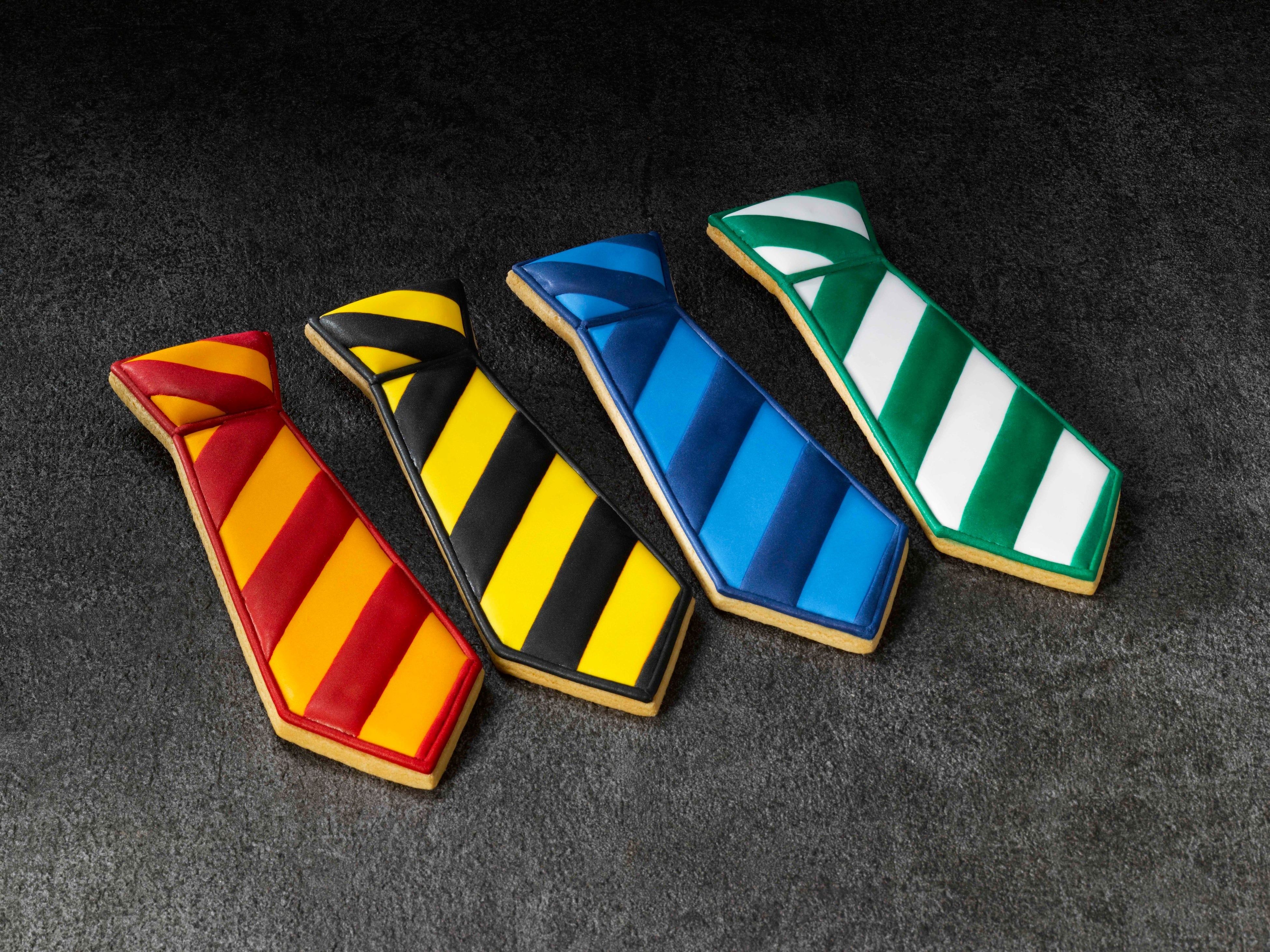 ホグワーツ魔法魔術学校の制服をイメージしたネクタイ型のアイシングクッキー。