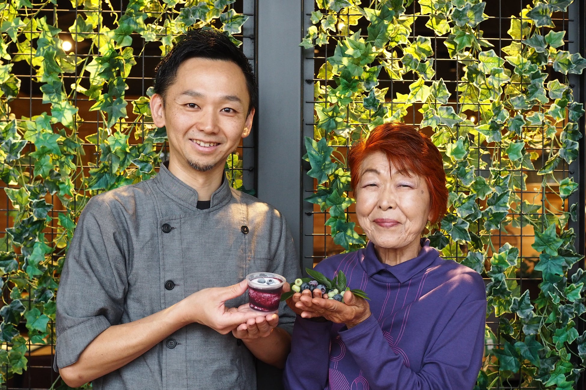 写真左より、ジェラートマリノ代表 池田順也さま、ファームFUMI代表 髙橋文子さま