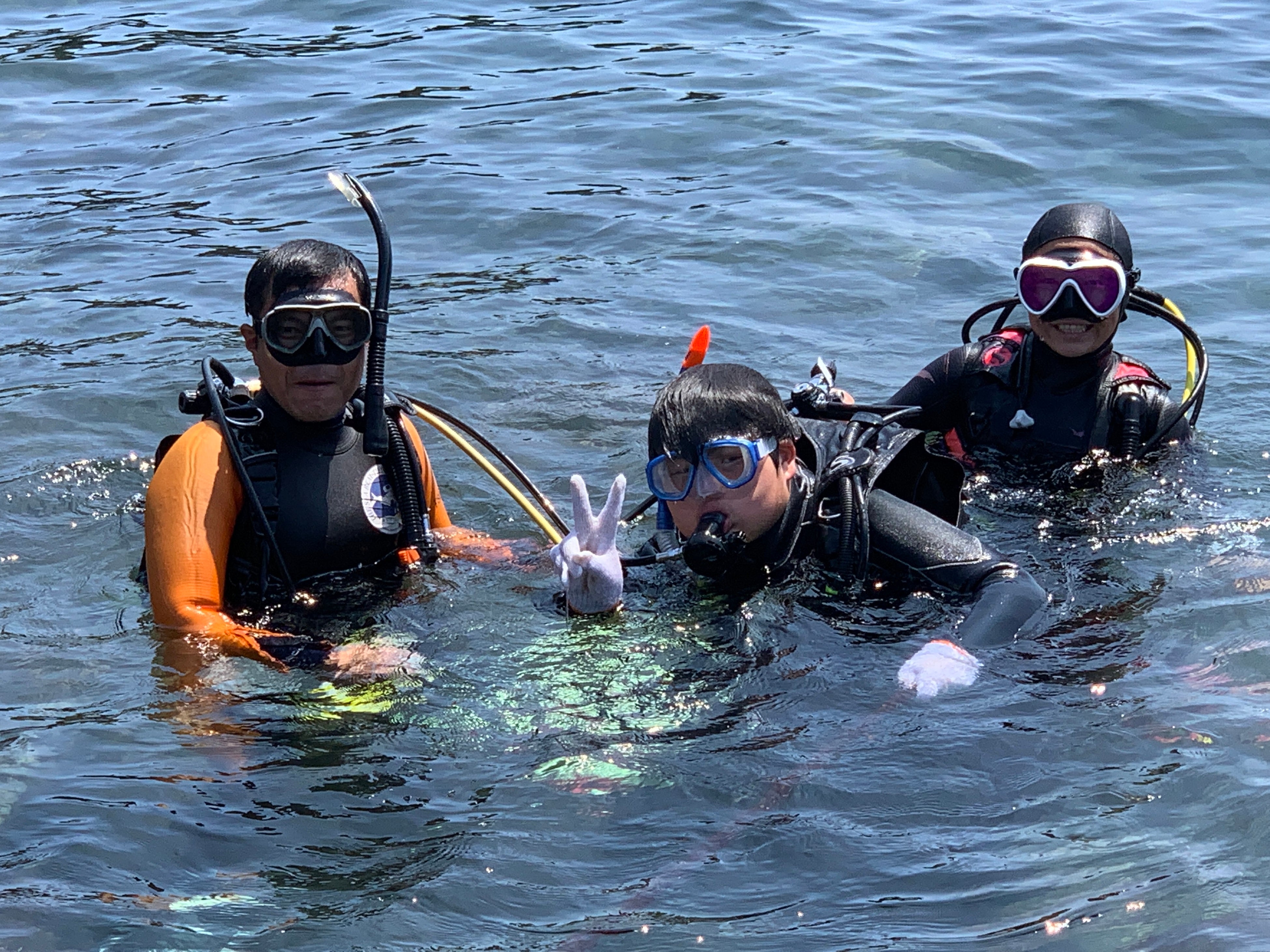 海でダイビングの練習、海の魚を見よう、ダイビングライセンステスト、閉校式