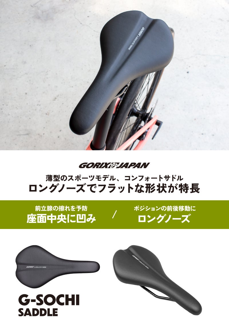 自転車パーツの開発・製造・販売を手掛ける、GORIX株式会社(所在地:大阪市東淀川区瑞光3-9-29、代表取締役:長野明)の自転車パーツブランド「GORIX」から新商品の「自転車サドル(G-SOCHI)」が発売されました。