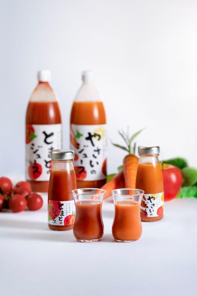 自社農園で採れた野菜を使ったジュースやスープの自社製品、