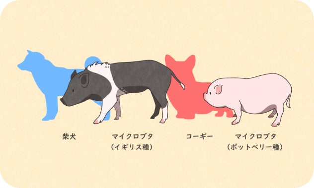 マイクロブタは適切な環境の飼育環境下でおおよそ2歳~3歳までに中型犬ぐらいの大きさに育ちます。