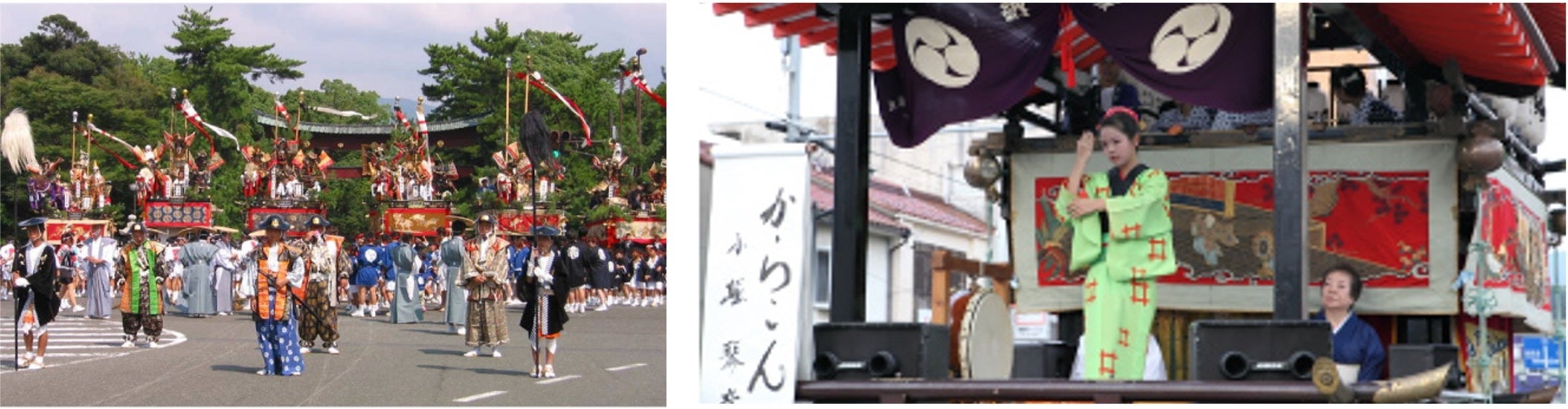 敦賀まつり(氣比神宮例祭)とは、 9月2日から15日まで続く「氣比の長まつり」として有名です。祭りは、2日の宵宮祭から始まり、子供たちが踊りを奉納し、笛や太鼓などの賑やかなお囃子とともに市内を巡行します。その後、4日の例大祭、5日から10日まで後祭が行われ、15日の月次祭をもって終了します。祭り期間中は、商店街のお祭り広場、市民総参加のカーニバル、民謡踊りなどが行われ、多くの人が敦賀に訪れます。