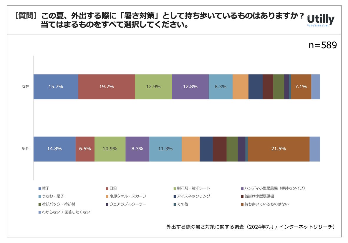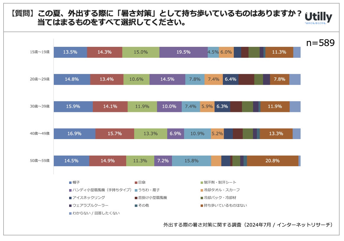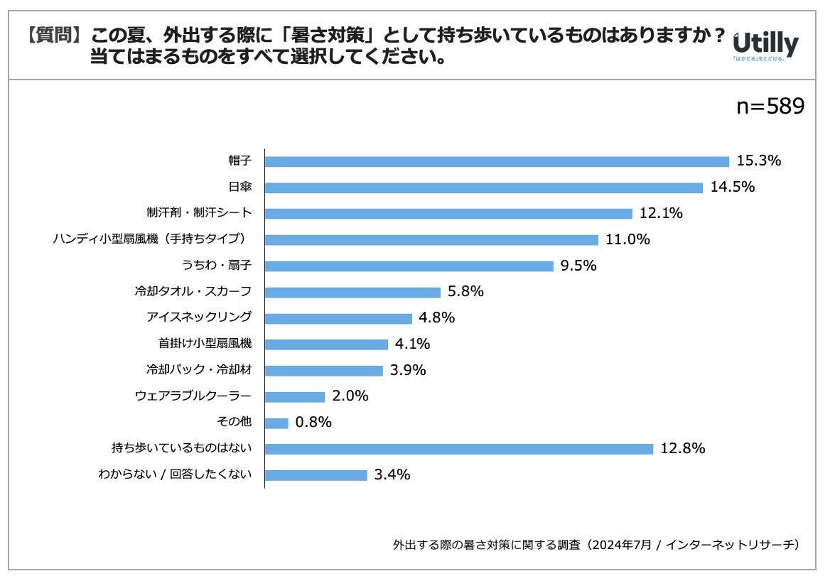 Q.この夏、外出する際に「暑さ対策」として持ち歩いているものはありますか?当てはまるものをすべて選択してください。