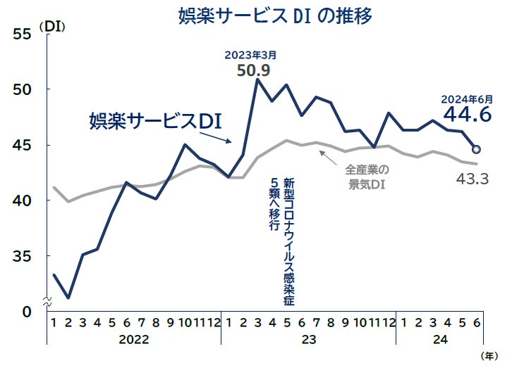 娯楽サービスDI、全産業の景気DIを上回るも3カ月連続で悪化