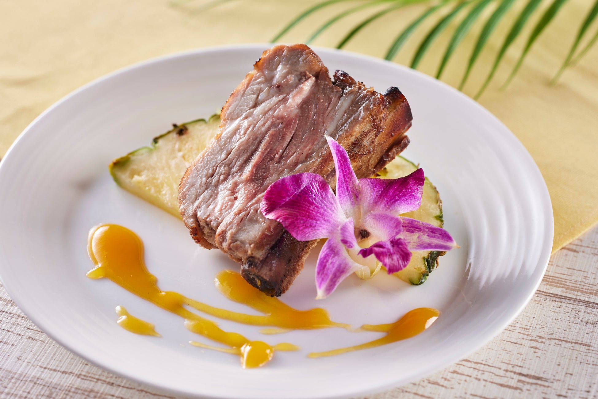 お客様の目の前で料理を仕上げるパフォーマンスキッチンでは、毎回人気の「ローストビーフ」に加え、スパイスが香るアメリカ南部ルイジアナ州発祥の郷土料理「ケイジャンビーフ」、コーラで風味付けした「ハワイアンスペアリブ」、穴子を赤ワインで煮込み芳醇な香りをまとわせたフランス料理「穴子のマトロート」をご用意します。