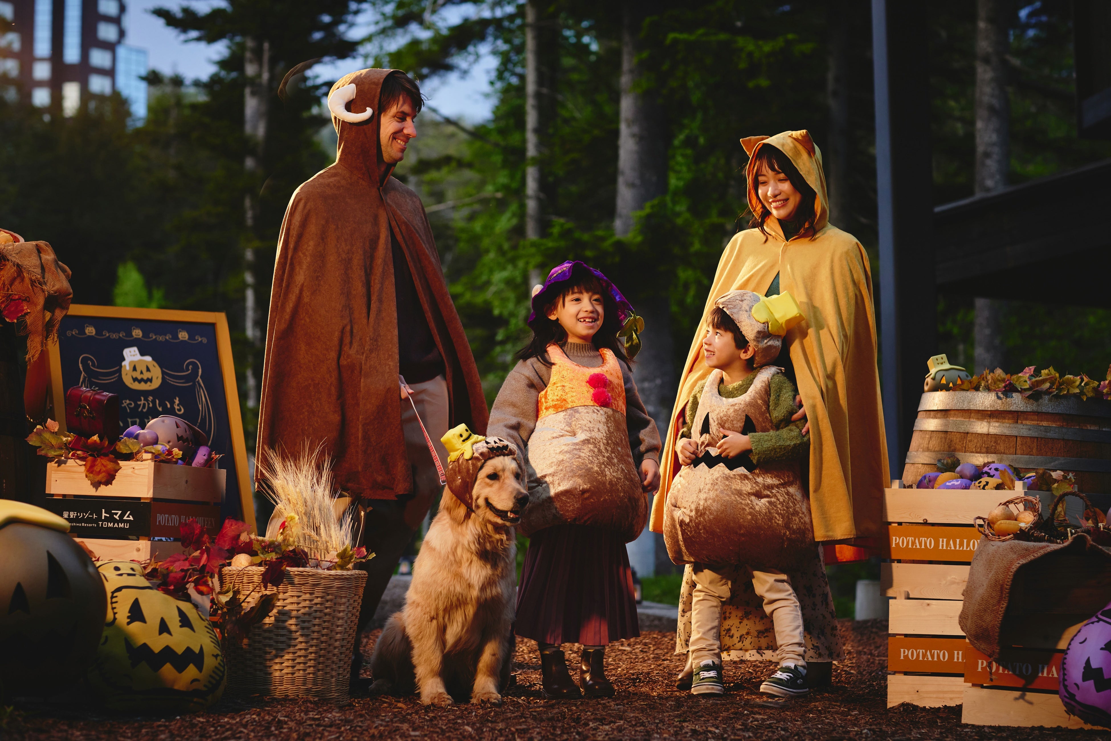 じゃがいもをモチーフにした可愛らしい帽子や衣装など、自身がじゃがいもになりきれるアイテムを無料で貸し出します。さらに、今年は愛犬用衣装も用意しているため、家族全員で仮装が可能です。リゾナーレトマムのフロントで衣装に着替えて、ホタルストリートのフォトスポットで写真を撮ることで、より一層イベント気分を盛り上げることができます。