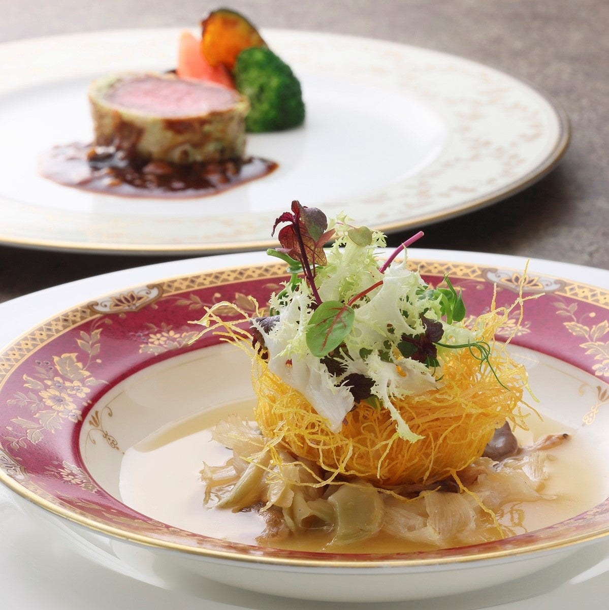 当日は「京都府の現代の名工」にも表彰される総料理長 中埜智史をはじめ、日本料理、中国料理、フランス料理、鉄板焼、製菓・製パンの各担当シェフ総勢7名が腕をふるいます。スタートを飾る前菜には、6人のシェフによるそれぞれの持ち味を活かした料理を2回に分けてご提供します。続く魚料理、肉料理は、2人のシェフがコラボレーションし、それぞれのジャンルを越えて融合し、昇華させた特別な一皿をご用意。また、この日のためにシェフとパティシエが考案したホテルメイドパンをお料理とともに召し上がりいただきます。デザートは、フィナーレにふさわしい特別な一皿をシェフ・パティシエとフランス料理のシェフが一体となりご用意します。