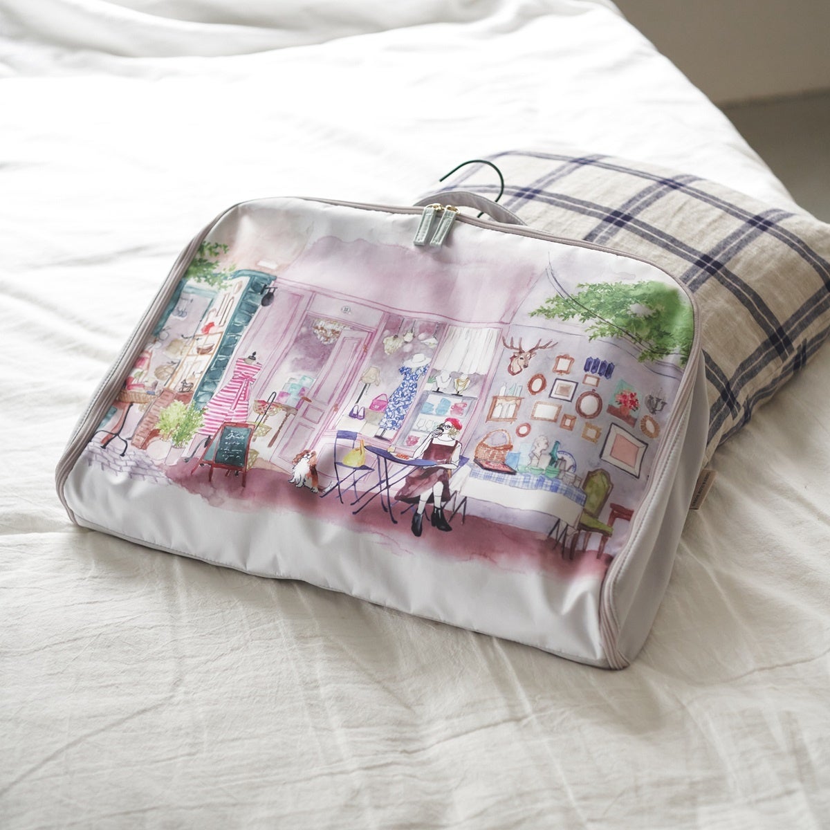今回のコラボレーションでは、 蚤の市でのウィンドウショッピングをイメージしたイラストを描かせていただきました。自分だけの宝探しをするようなあのときめく気持ちを、トラベルアイテムとともに楽しんでいただけたら嬉しいです。