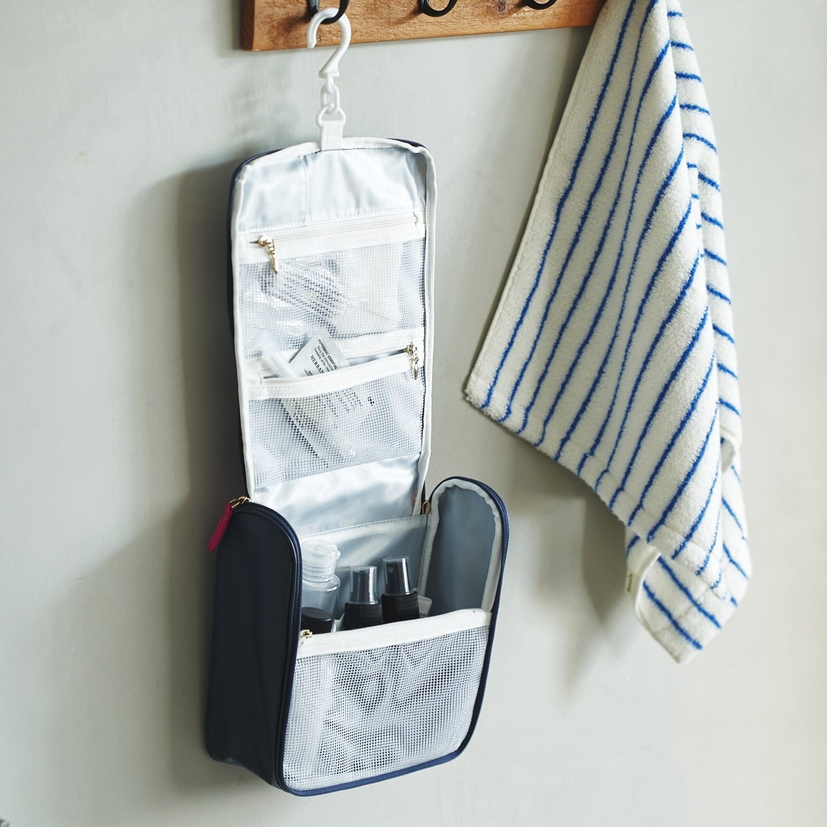 パッキングに便利な収納ケースや巾着に加え、そのまま吊るして使えるオーガナイザーやハンギングポーチなど機能的なアイテムがラインアップします。