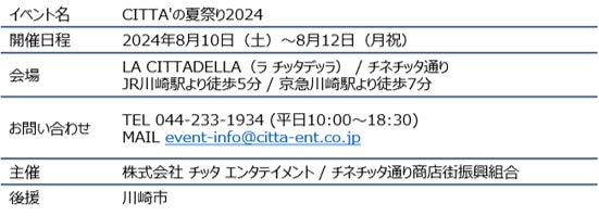 【8月10日(土)〜12日(月・祝)は、“チッタの夏祭り”も開催!】