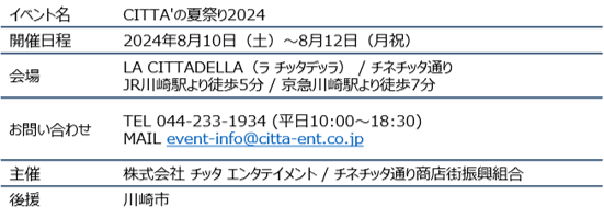 【8月10日(土)〜12日(月・祝)は、“チッタの夏祭り”も開催!】