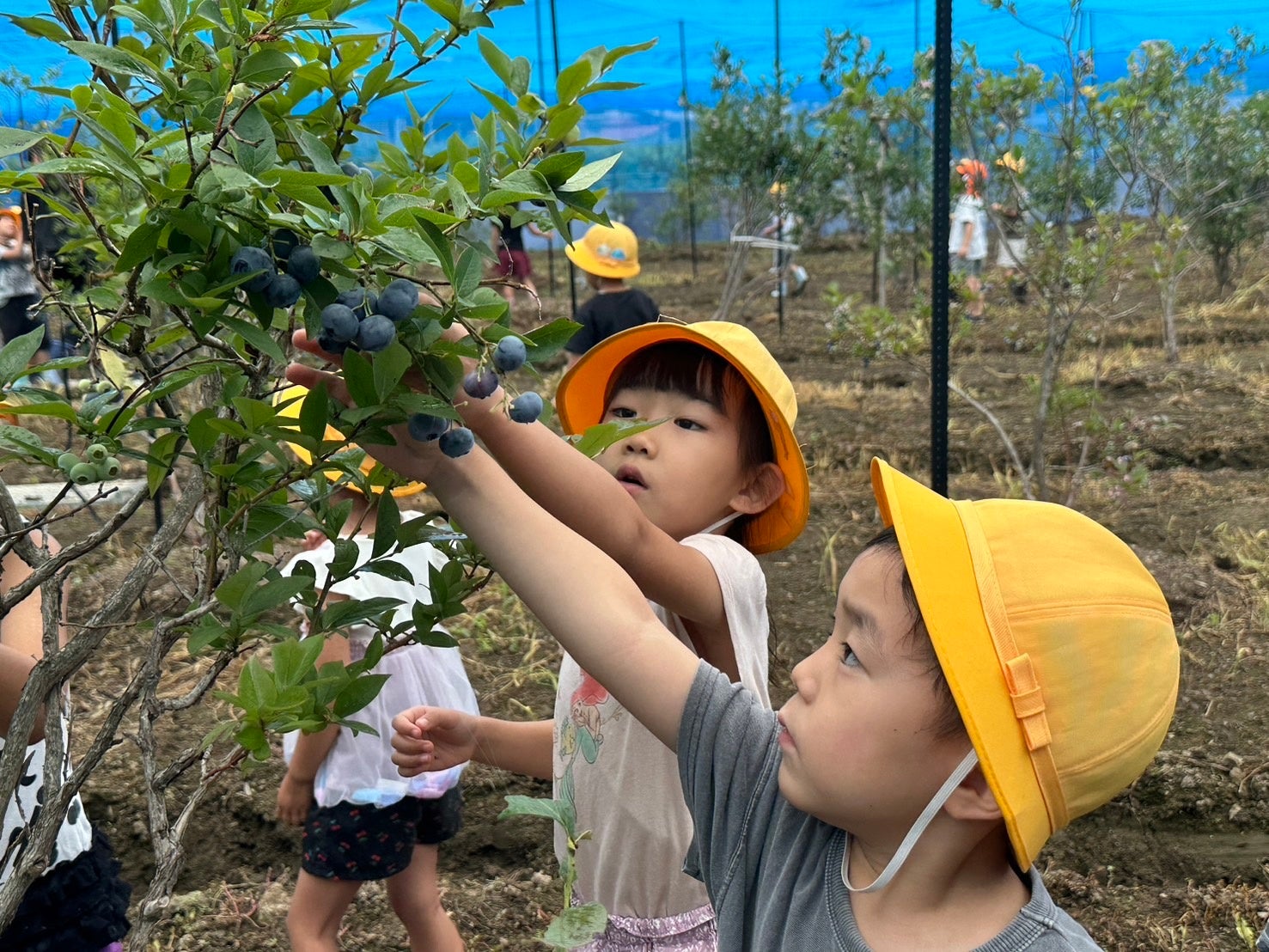 ブルーベリーの季節が到来!園児が笑顔でブルーベリー狩りを体験