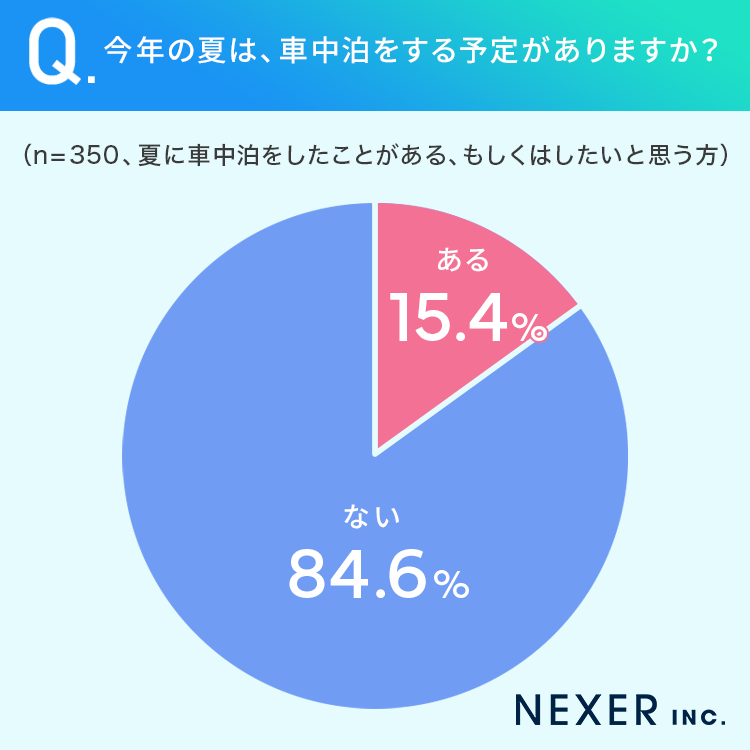 15.4%の方が、今年の夏に車中泊をする予定が「ある」と回答しています。