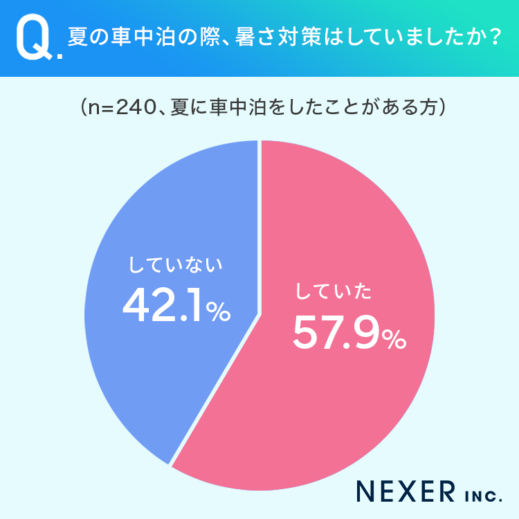 続いて「夏に車中泊をしたことがある」と回答した方に、暑さ対策はしていたか聞いてみました。