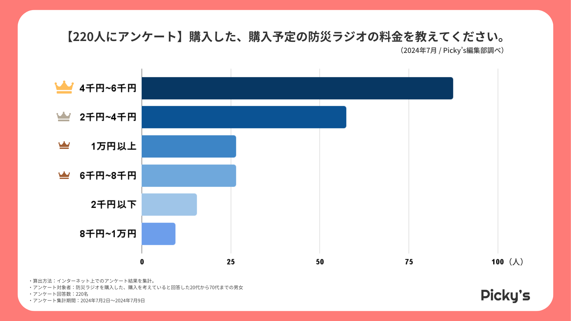 約4割の方が4千円~6千円の防災ラジオを選んでいることが分かります。