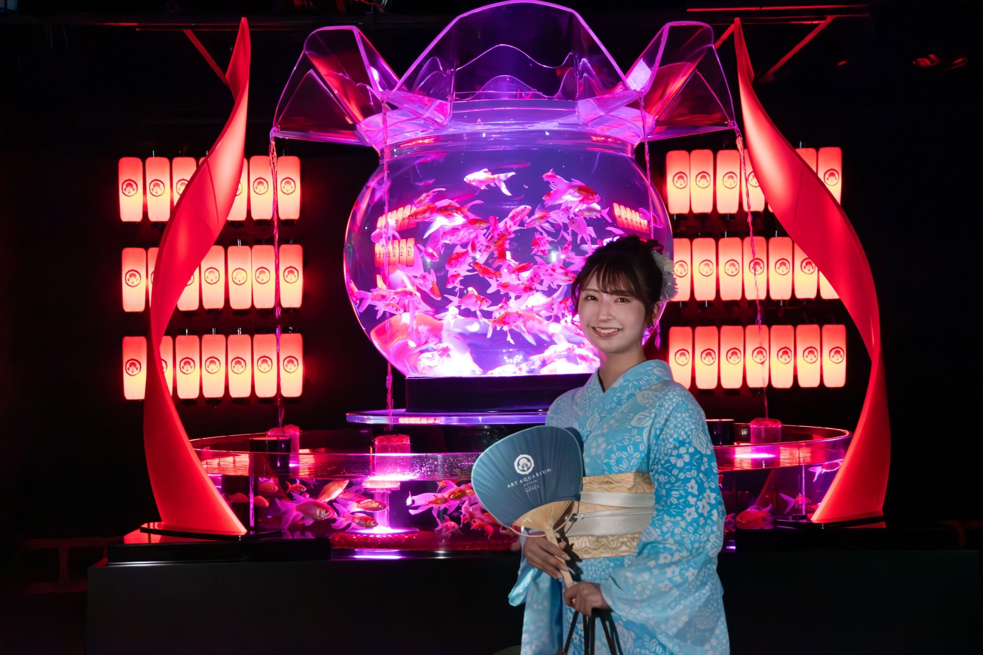 今年の夏は浴衣で金魚アート鑑賞を!浴衣でおでかけの際に、アートアクアリウム美術館の華やかで映える空間での写真撮影とあわせて、夏ならではの涼やかな思い出をお持ち帰りください。