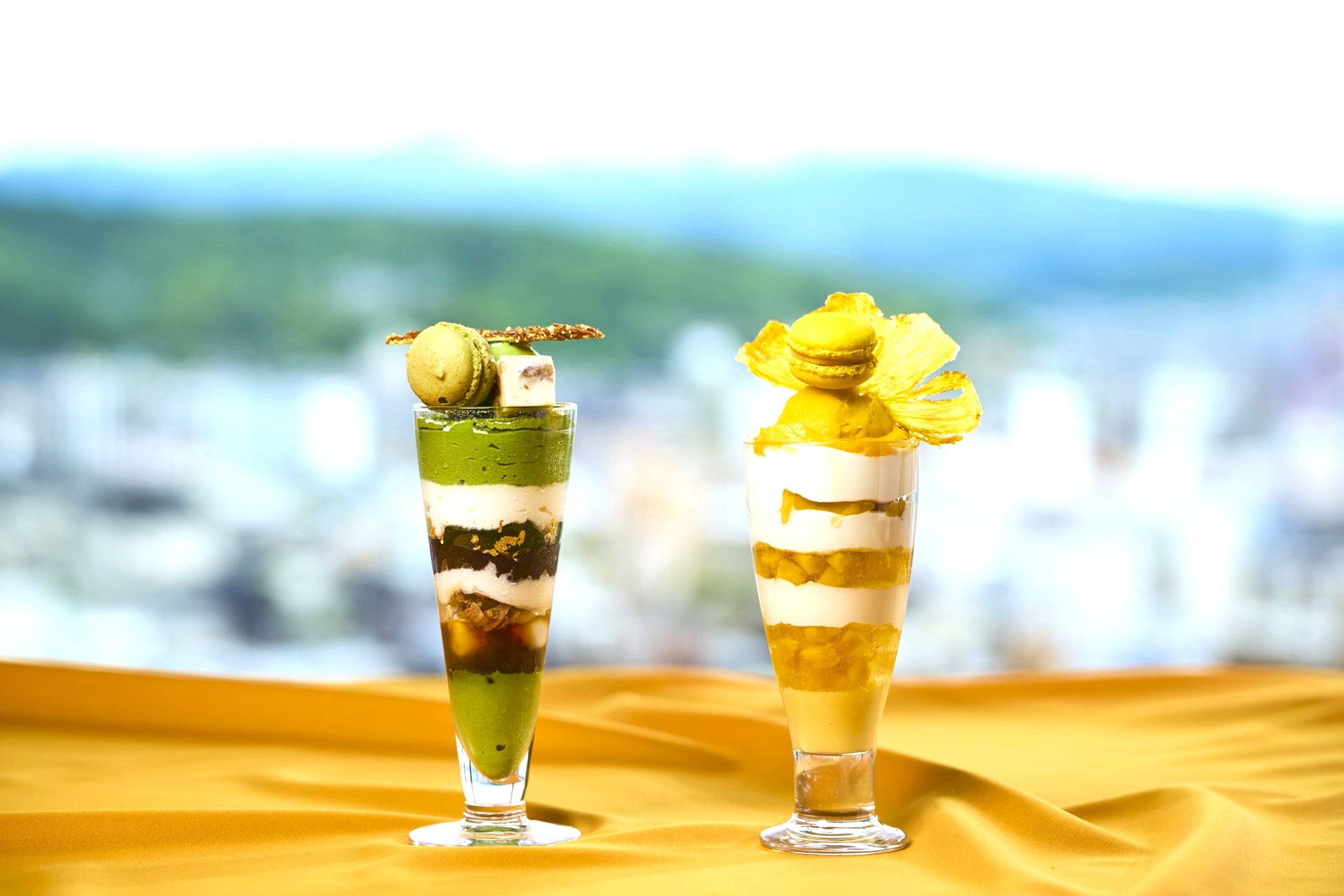 移ろいゆく四季により旬の素材をテーマに、異なるデコレーションでお届けする、繊細で華やかなパフェ「金彩」〈KINSAI〉は、レストラン料理長の中谷と副料理長の中野がレシピ開発を手がけた”シェフが作るパフェ”です。