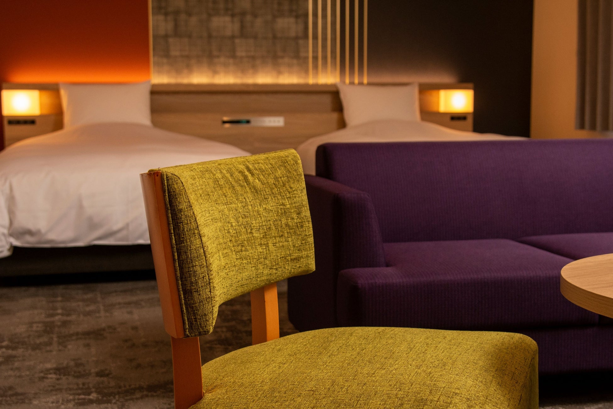 「武家屋敷」をコンセプトにシンプルで機能的なデザインにまとめ、加賀五彩の華やかさをプラス。伝統的な色彩が奥ゆかしく、ゆったりとしたお時間をお過ごしいただけます。