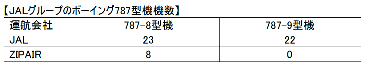 JALグループではすでに50機以上のボーイング787型機(下表参照)を運航しており、今回の追加導入により、今後成長が見込まれる北米・アジア・インドを中心に国際線の機材を増機・大型化します。