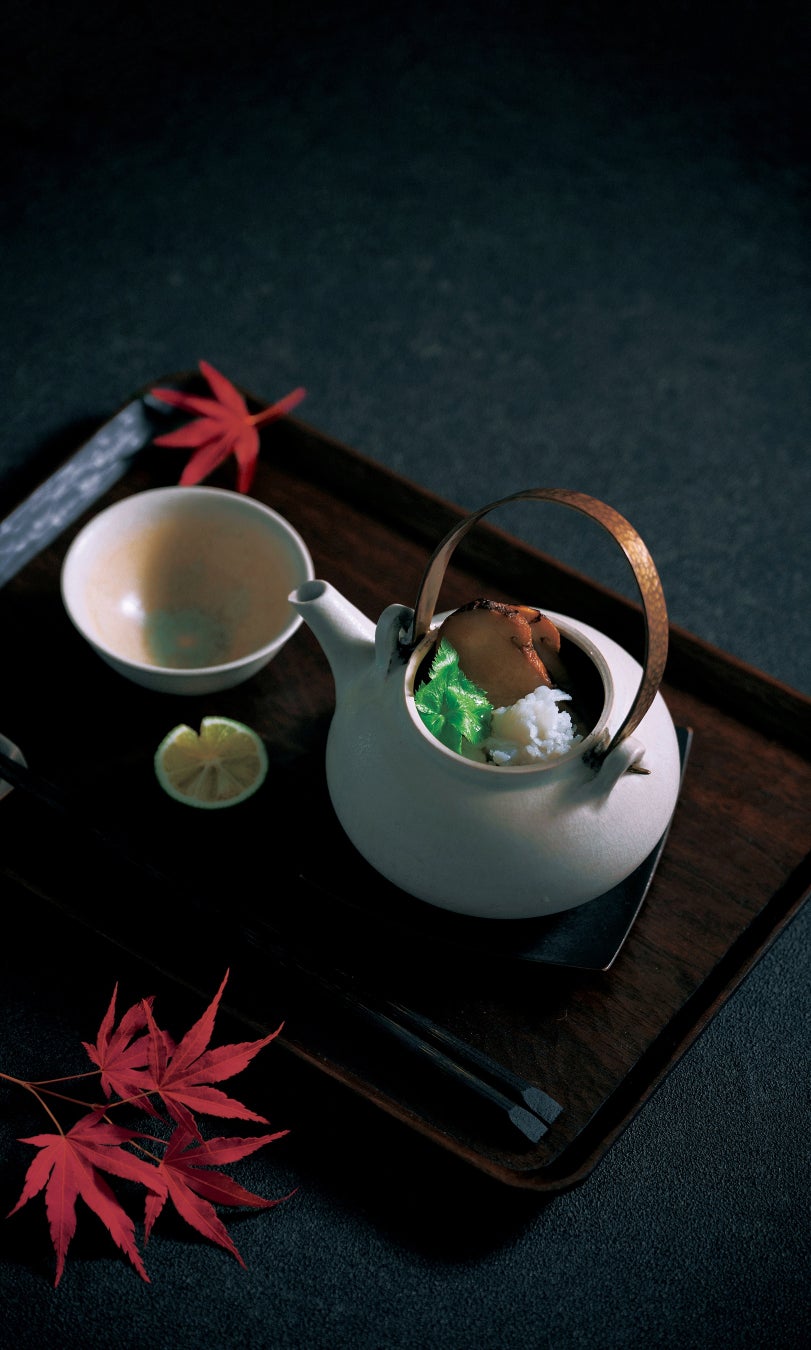 秋のご馳走と言えば「松茸」。焼く・蒸す・揚げるなどの調理法を用い、松茸特有の香りや食感を石焼、土瓶蒸し、黒毛和牛巻焼、フライ、土鍋炊き御飯の5つの味わい方で堪能できる特別会席をご用意いたしました。四季亭こだわりの出汁を使用した土瓶蒸しは、芳醇な松茸の香りと鱧からの旨味が出た出汁が織りなすハーモニーをお楽しみいただけます。季節感を表現した器で提供するこの時期だけの会席料理を、 高層階からの煌めく夜景とともにお楽しみください。