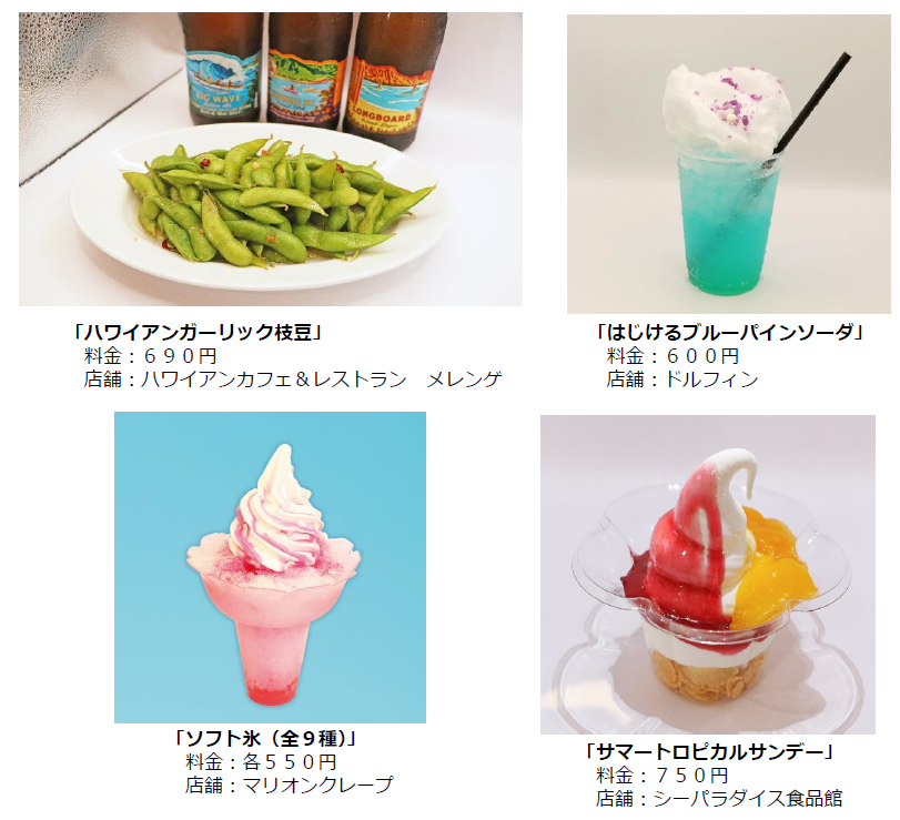島内のレストラン・軽飲食店では暑い夏に欠かせない“涼”スイーツや夏らしいフードやドリンクをご用意しております。「かき氷」や「アイス」など食べて涼しいメニューはもちろん、夏限定のメニューや、心も体も癒されるかわいいフードなどシーパラならではの夏のメニューをお楽しみいただけます。