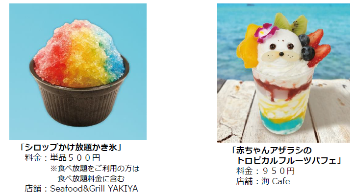 時 間 : 各店舗の営業時間に準じます。 場 所 : Seafood & Grill YAKIYA、ドルフィン、ハワイアンカフェ & レストラン メレンゲ |
