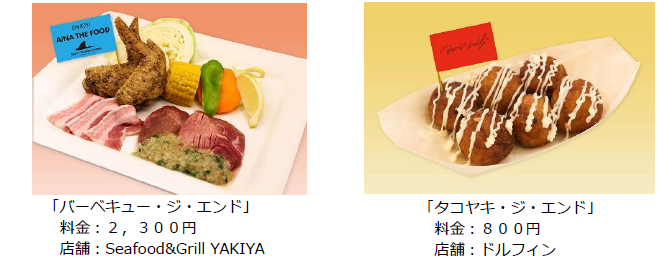 島内のレストラン・軽飲食店舗では、『アイナ・ジ・エンド』が好きな食材などをBBQでお楽しみいただける「バーベキュー・ジ・エンド」をはじめ、自身の名前をモチーフにした「タコヤキ・ジ・エンド」などのオリジナルフードを販売いたします。