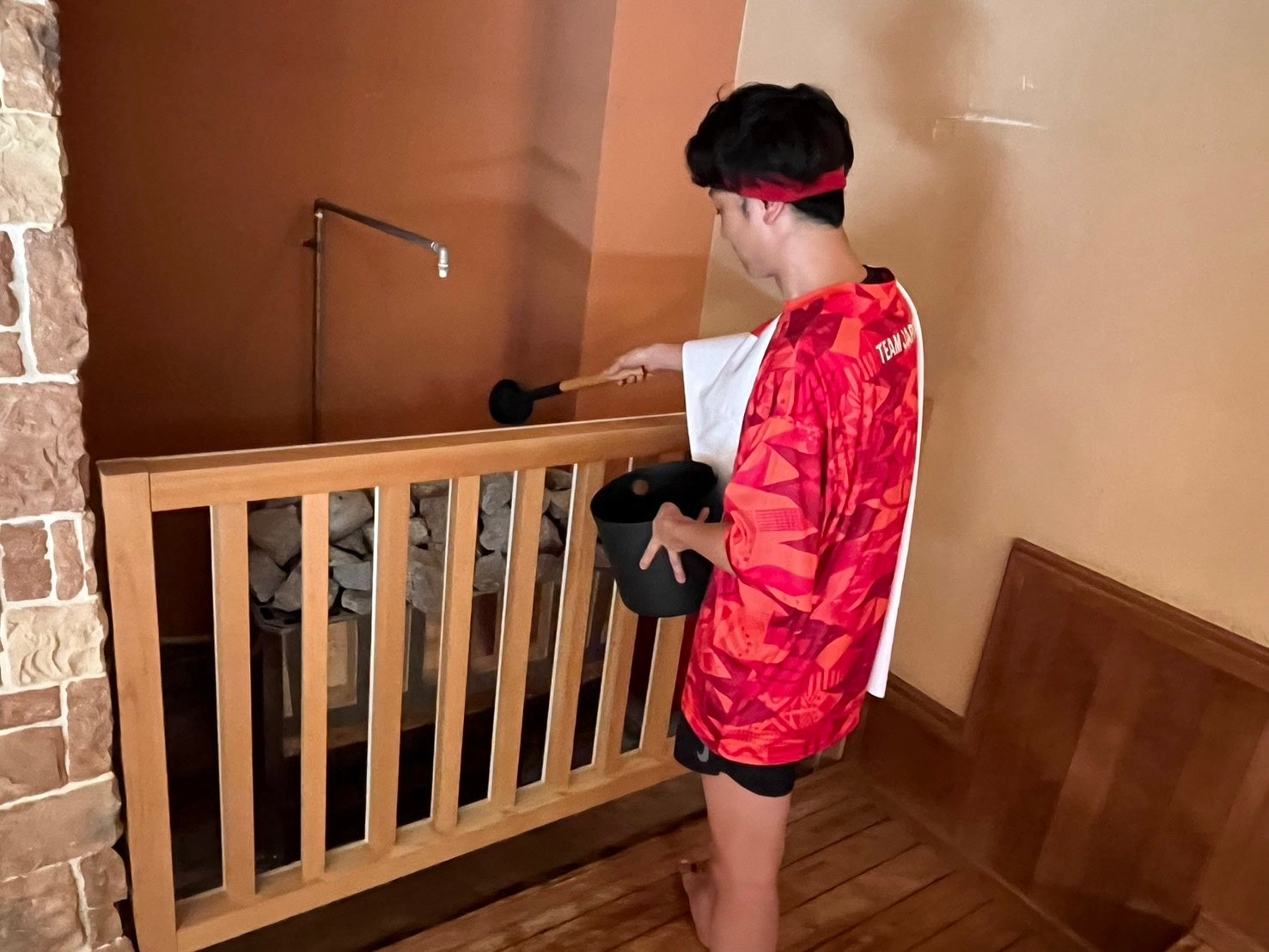 2024年7月27日(土)からパリ五輪期間中、特別なロウリュ熱波サービスを毎週土曜日にご提供します。TEAM JAPANパリ2024公式ライセンスTシャツを纏ったスタッフが、日本国旗デザインのタオルを使用して熱波を振るいます。また、バレーボール日本代表の試合期間中には、フランスに因んだワインの香りのアロマ水を使用し、特別な体験をお届けします。この豪華なサービスで、五輪の興奮とともに至福のひとときをお楽しみください。