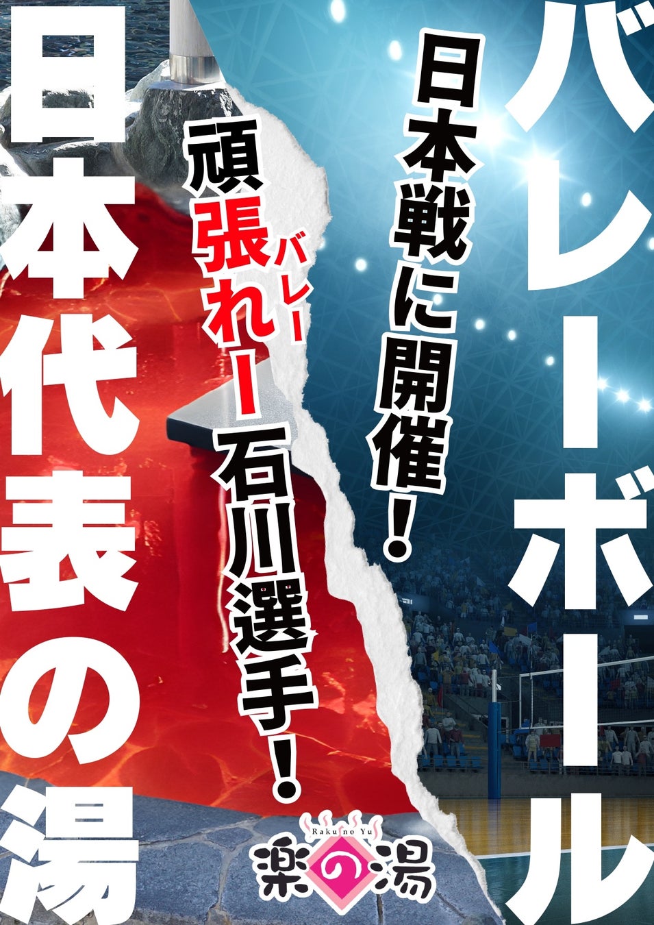 「おかざき楽の湯」の特別イベント「バレーボール日本代表の湯」は、石川兄妹への熱い応援と地域の絆を深めるための絶好の機会です。情熱の赤に染まる露天風呂と熱気溢れるサウナで、皆さんと一緒に日本代表の勝利を信じて応援しましょう。