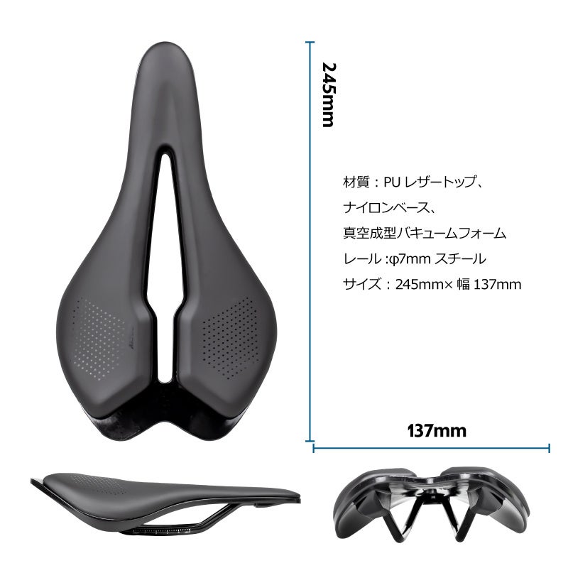 ロードバイクやクロスバイク、マウンテンバイクなどスポーツ自転車に最適なサドルで、