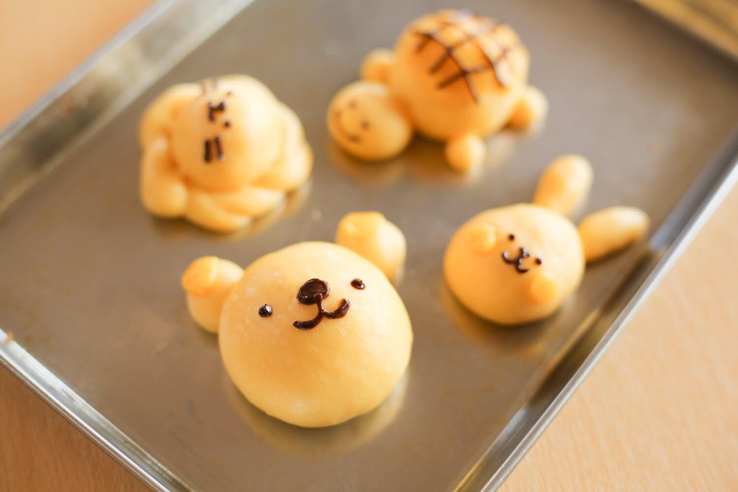 はじめての方でも安心して参加していただけるパン作り体験です。パン生地をこねてオリジナルのパンを作ったら、オーブンで焼き上げる間にくりーむパンのクリーム注入体験をしていただけます。