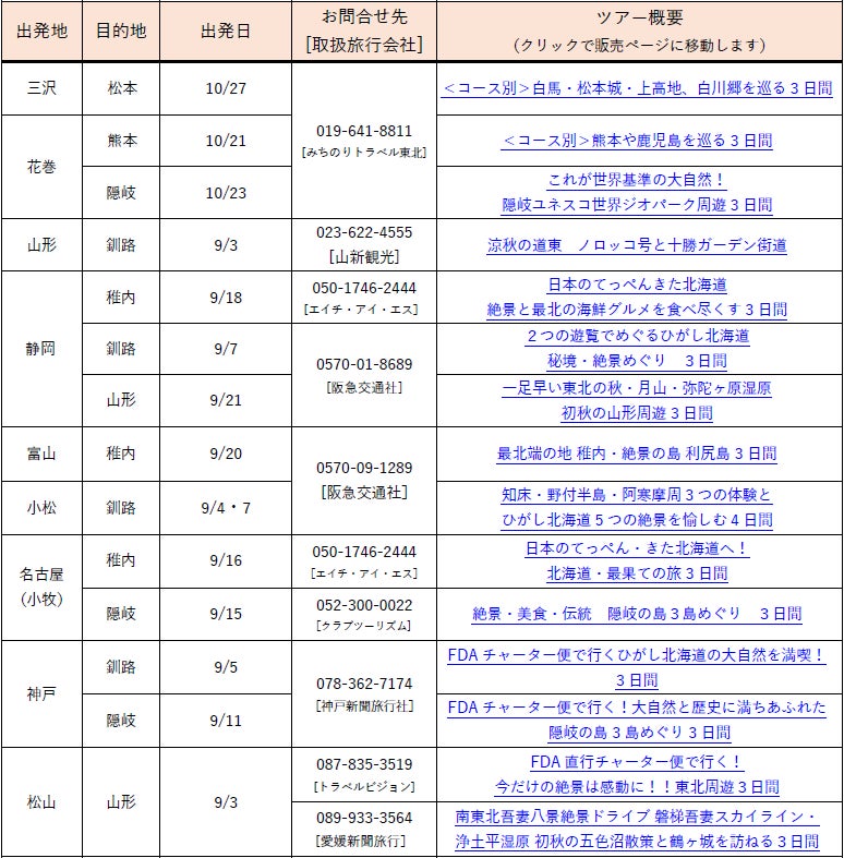 現在募集中の、FDAチャーター便を利用した旅行ツアーのご案内です。