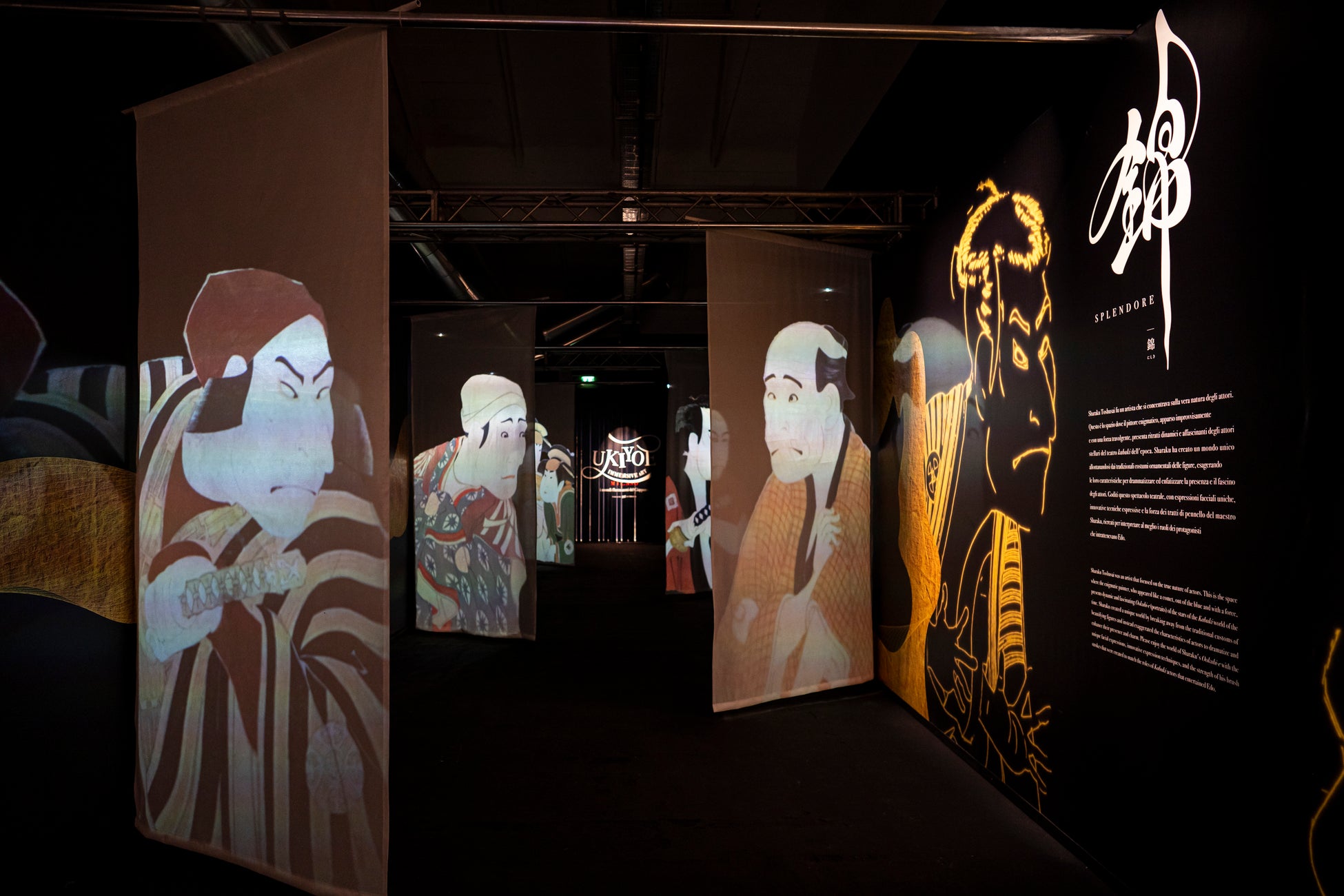 彗星の如く現れた謎多き絵師・東洲斎写楽の「大首絵」をダイナミックに魅せる空間。テーマは、美しく洗練された形という意味を持つ「錦」。