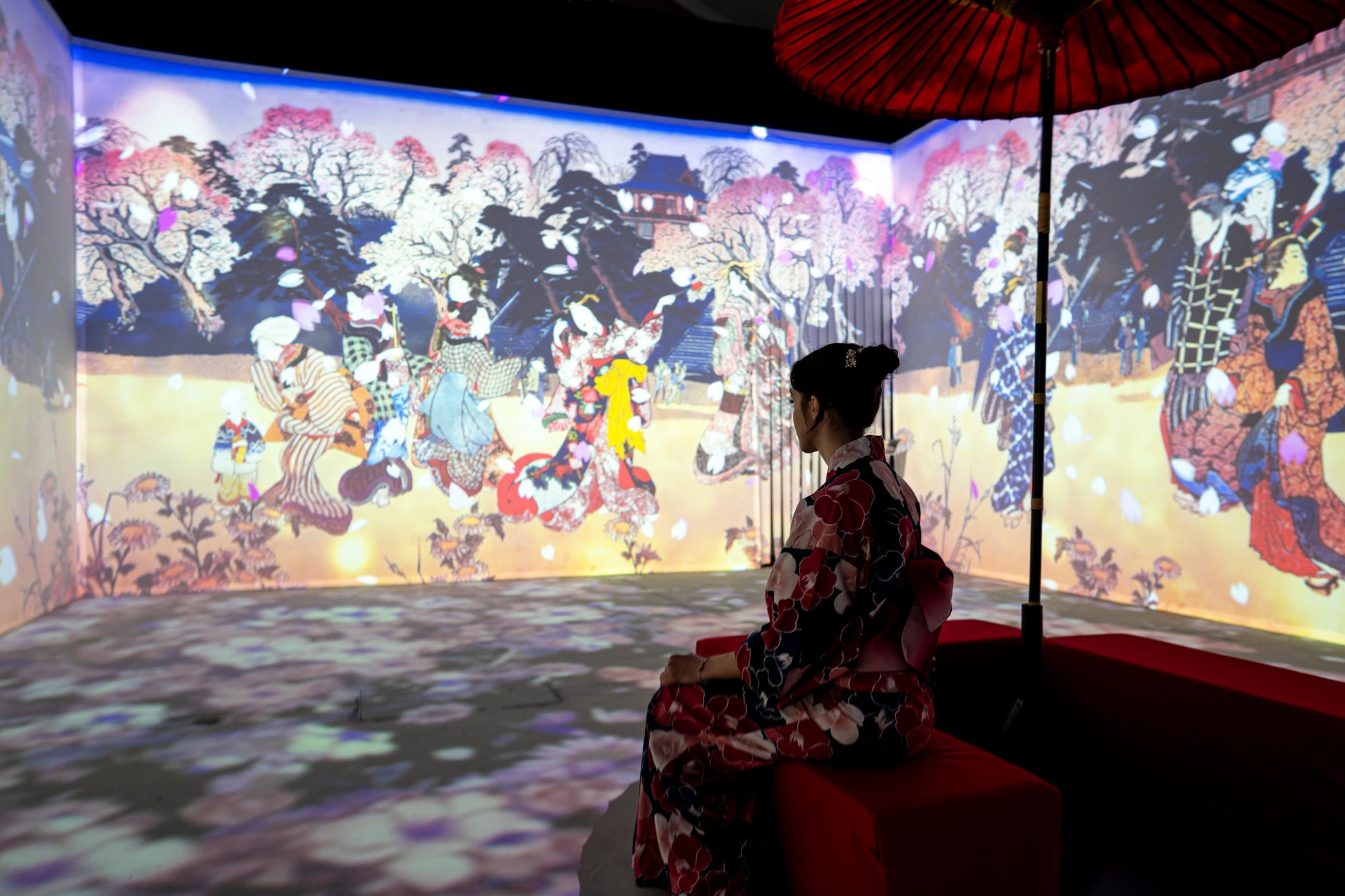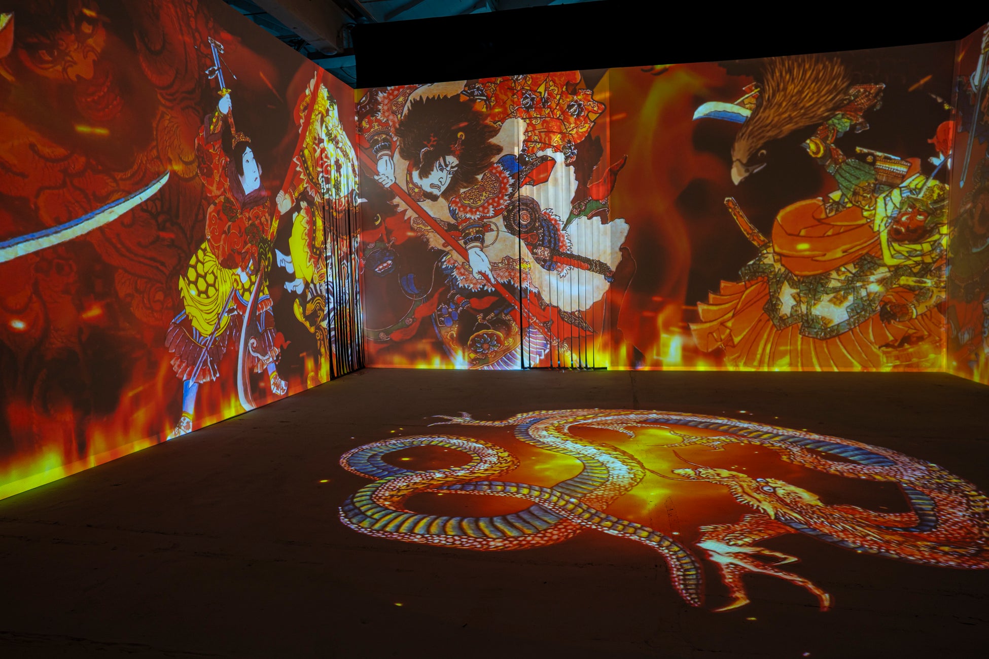 葛飾北斎、歌川国芳、歌川広重、喜多川歌麿、東洲斎写楽、歌川国貞など世界的な浮世絵師の作品300点以上をもとに、3DCGアニメーションやプロジェクションマッピングを駆使して大人から子どもまで楽しめるグラフィカルなデジタルアート作品として描き、立体映像空間で浮世絵の世界に没入できる体感型デジタルアートミュージアムです。