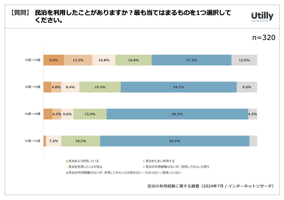 法人SaaSの比較メディアUtilly(運営会社:株式会社GO TO MARKET、所在地:東京都渋谷区)では、2024年7月に民泊の利用経験に関する調査(2024年7月)を実施しました。