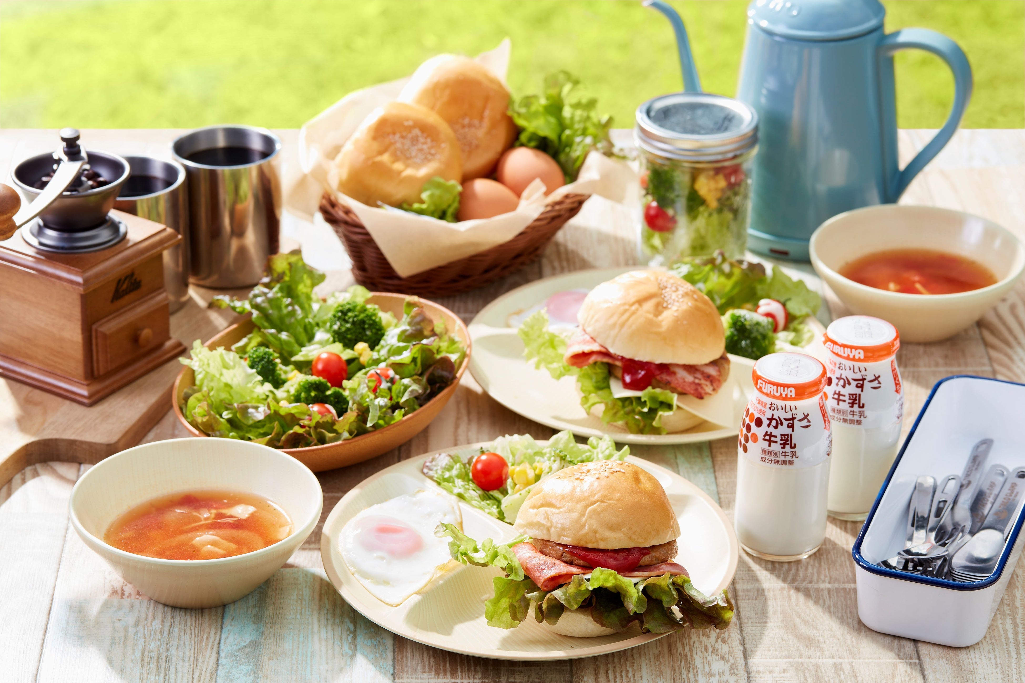 朝食は当施設の人気メニュー、アメリカンスタイルで自分で作るハンバーガーをお召し上がりいただきます。
