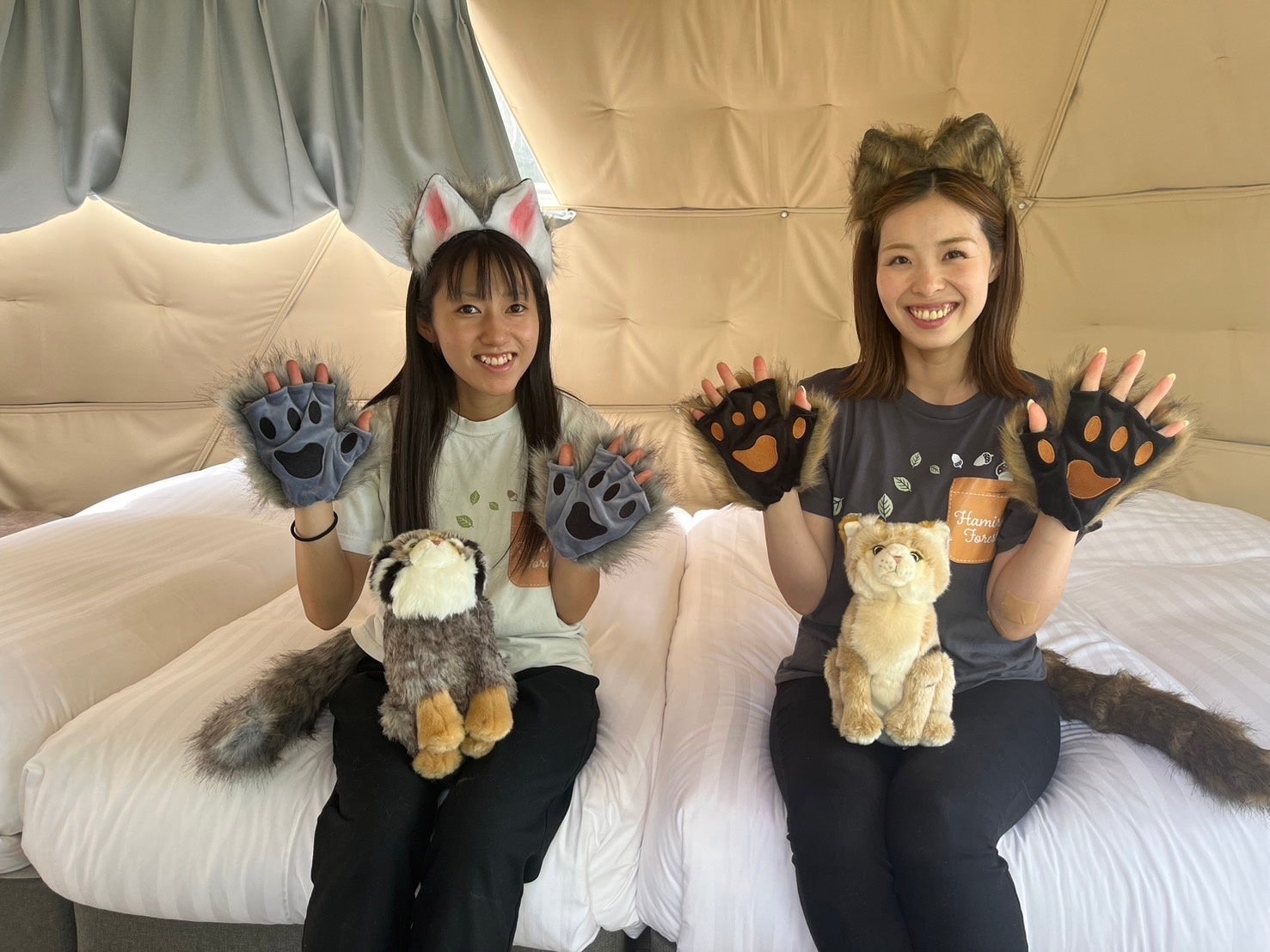 お部屋には、ネコになれるグッズも用意されています。しっぽやネコ耳を装着して、より一層ネコたちとの一体感を味わうことができます。ネコになりきって写真を撮ることで、思い出に残る楽しいひとときをお過ごしいただけます。