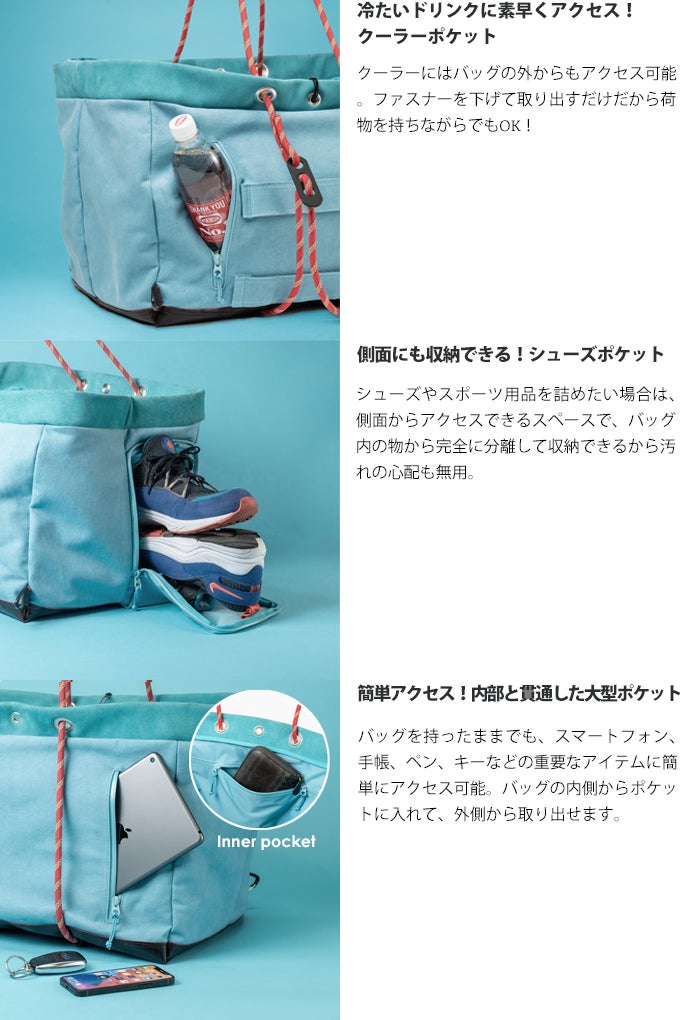 最強クラス24時間保冷の「COLDGIRL」は、冷たい飲み物を保冷したまま収納部に荷物やキャンプ用品などが入るので、一つのバッグで出かけることができます。耐久性の強い手染めの帆布生地をベースとし、更にハンドルにクライミングロープを採用することで生地を支える構造にして強靭なバッグに仕上げました。