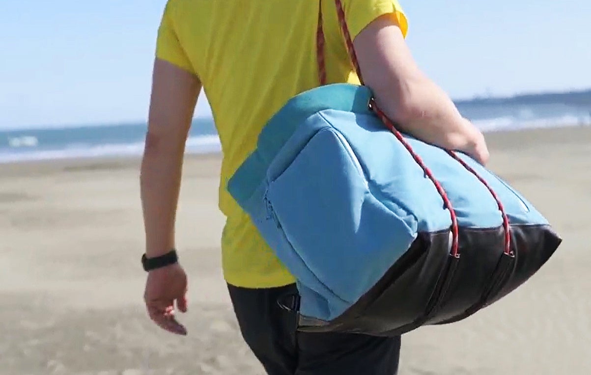 自転車などハンズフリーが必要な場合は、バックパックのように持ち運び。また、キャリーバッグのハンドルに装着できるから長期旅行でも使える仕様。