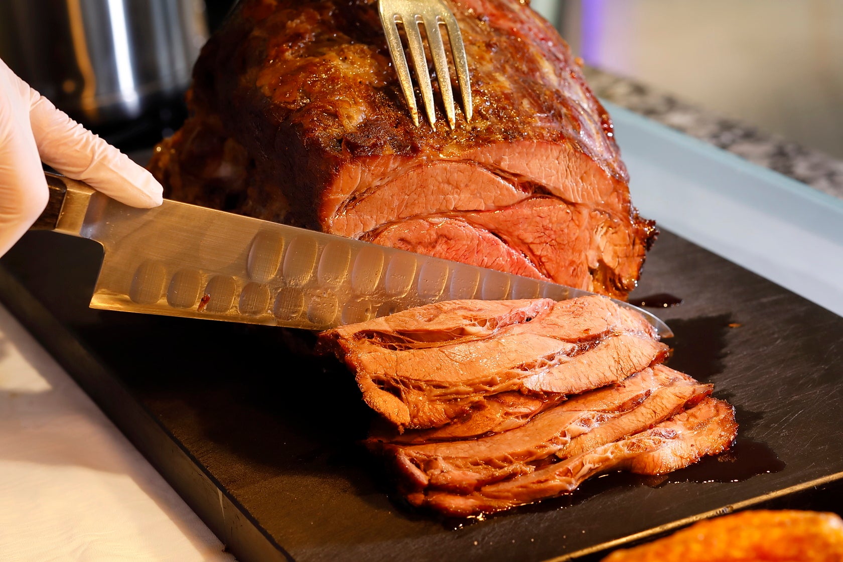 また、ホテル伝統の味を代々受け継ぐ「ローストビーフ」がナイトビュッフェ限定で登場。低温でじっくりと焼き上げ、旨味が凝縮されたローストビーフをお客さまの目の前で切り分けてご提供いたします。